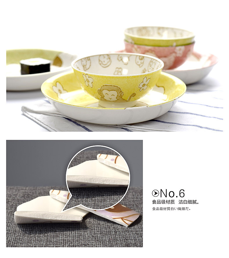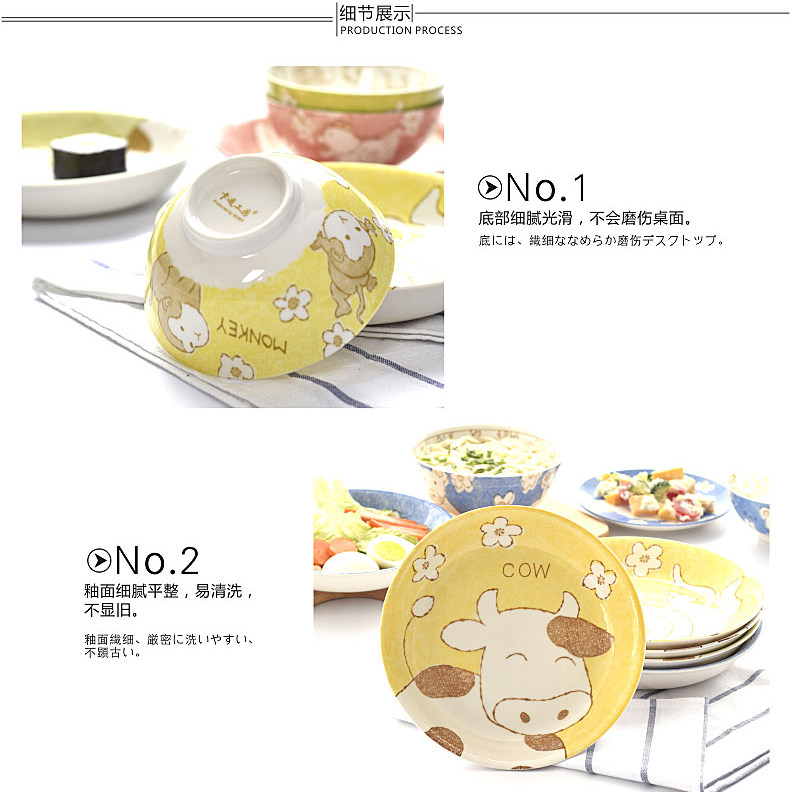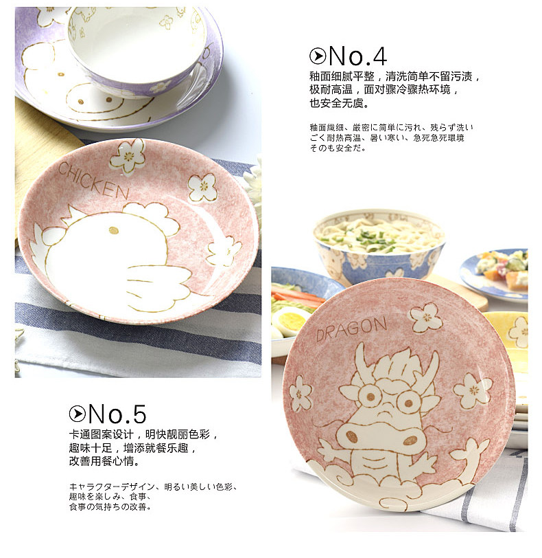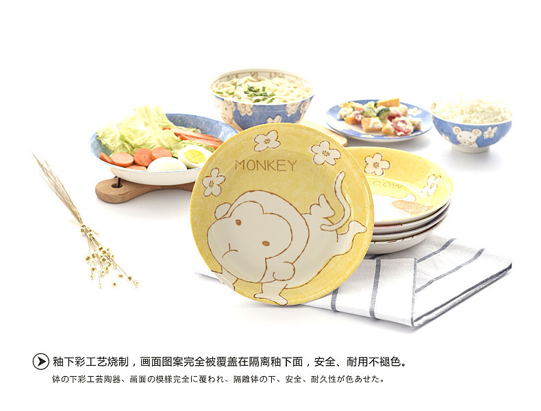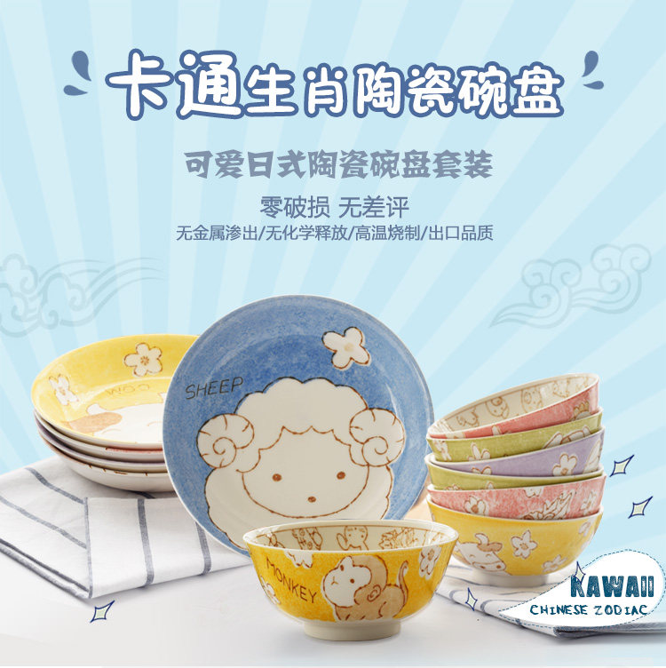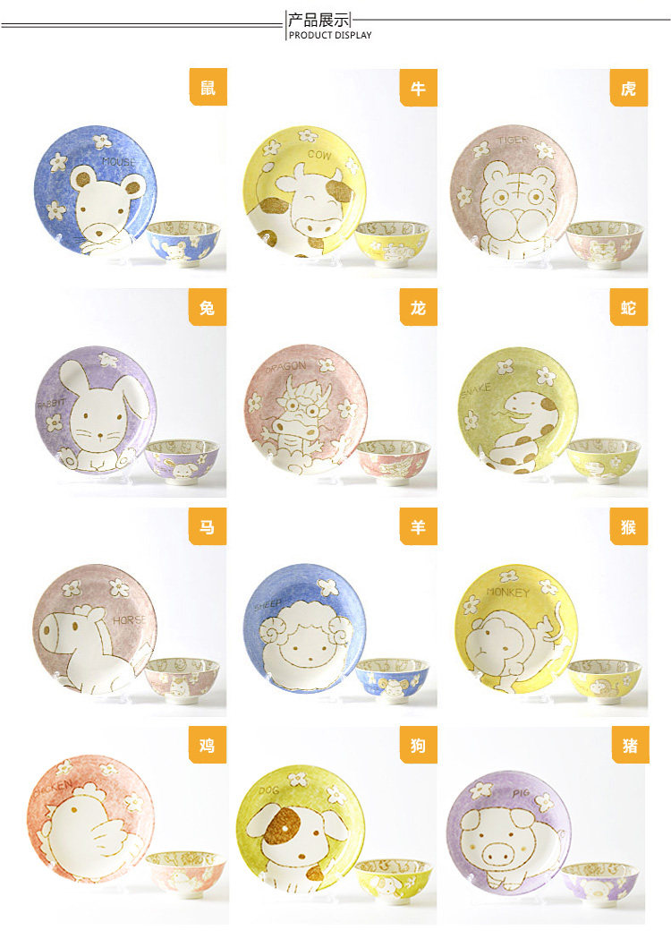 创意生肖陶瓷碗盘家用中式卡通碗筷可爱儿童套装学生个性吃饭餐具