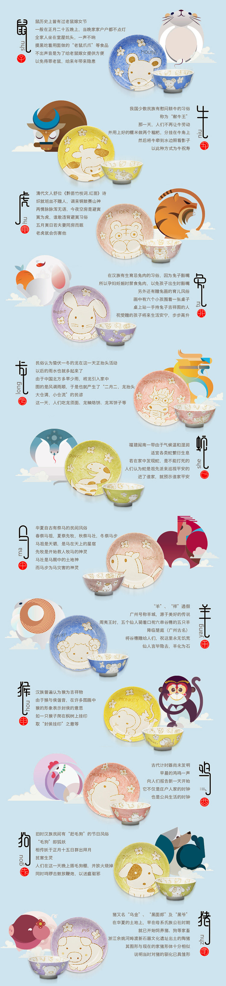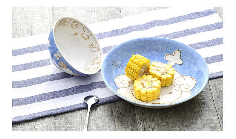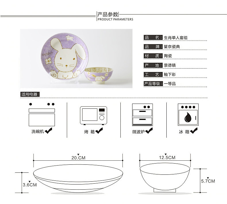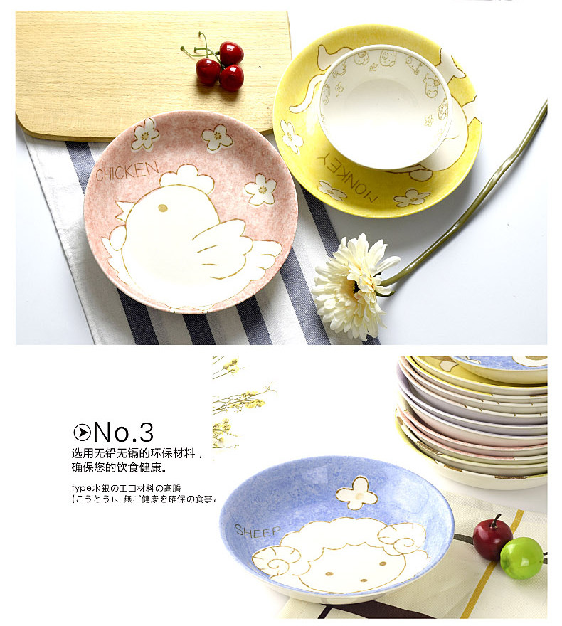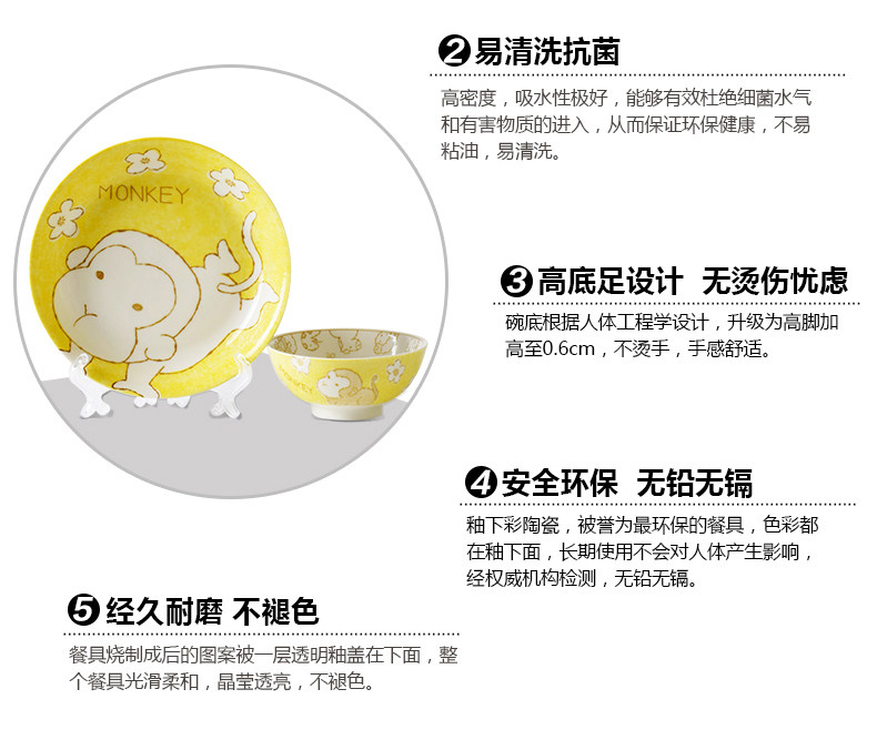 创意生肖陶瓷碗盘家用中式卡通碗筷可爱儿童套装学生个性吃饭餐具