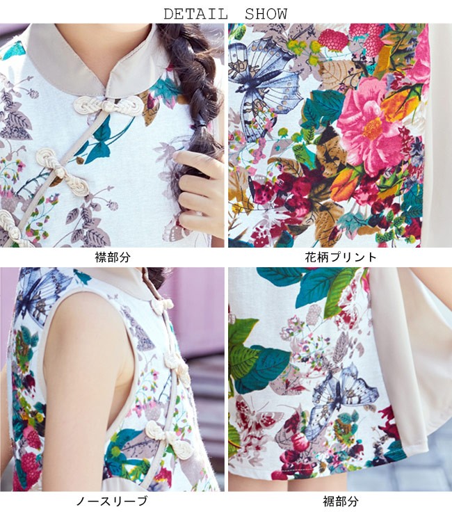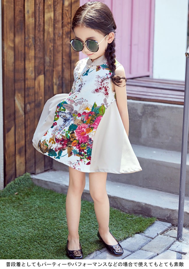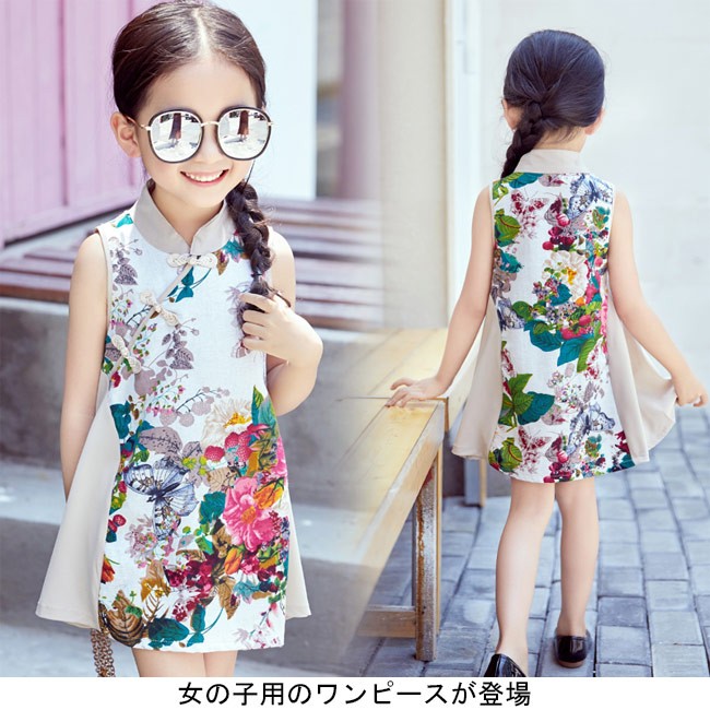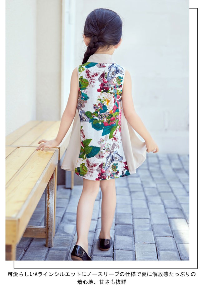 ワンピース 女の子 タンクワンピ チャイナドレス ノースリーブ ジュニア 女児 ショート丈ワンピース 子供服 花柄 Aライン レトロ キッズ服女の子用のワンピースが登場チャイナドレスをイメージしたデザインでとても優雅でレトロな雰囲気を醸し出す可愛らしいAラインシルエットにノースリーブの仕様で夏に解放感たっぷりの着心地、甘さも抜群カラフルな大きめ花柄プリントはキュートさも上品感も兼ね備える普段着としてもパーティーやパフォーマンスなどの場合で使えてもとても素敵工夫されたデザインと仕上がりでとても気質アップの一枚カラー:写真色素材 ポリエステルサイズ(cm) 100 110 120 130 140 150 160100 総丈54 バスト63110 総丈57 バスト66120 総丈60 バスト69130 総丈63 バスト72140 総丈66 バスト75150 総丈69 バスト78160 総丈72 バスト81ご注意:※サイズは平置きサイズです。素人採寸ですので、若干の誤差がございます、ご了承ください。