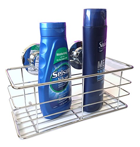 123 Dynamic Stainless Steel Rustproof Deep Shower Caddy Basket Holder - Super Strong Rotate & Lock Vacuum Suction Cups - Storage for Shampoo, Conditioner & Shower Gel in your Bathroom & Shower