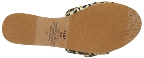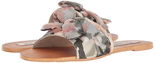 Flat slide sandal with abstract pattern-print band featuring decorative bow tie