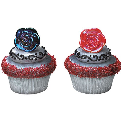 Black and red roses have an added shimmer which creates the perfect accent to your baked goods. Food-safe plastic. 12 per package - 6 of each color.