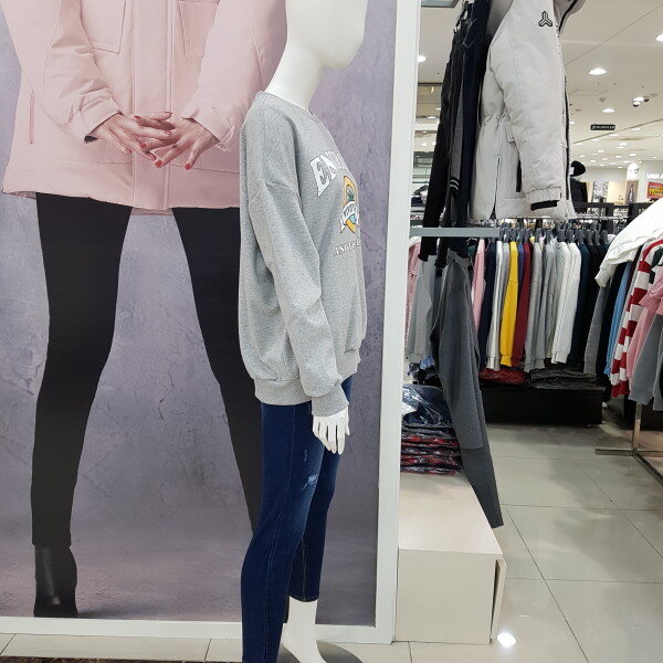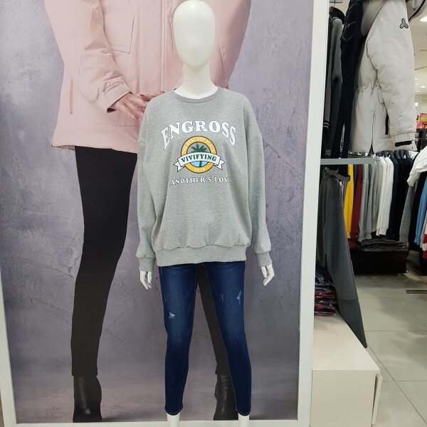 여성용 맨투맨 티셔츠 입니다.핑크색상으로 케쥬얼하게 데님이나 치노팬츠에도 잘 어울리는 아이템 입니다..