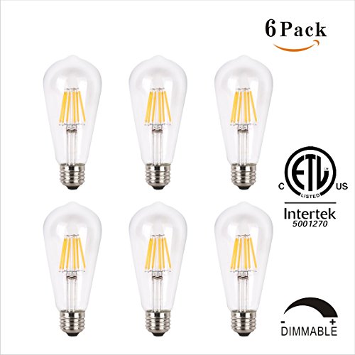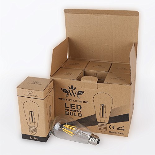 Worthy Lighting 6W Dimmable Vintage Edison Style LED Light Bulb, Equivalent to 60W Incandescent E26 Base, ST64 - Warm White (2700K), 6 Pack