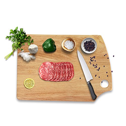 AugeHome Rubberwood Hardwood Cutting Board with Unique Design Chopping Board for Meat /Pizza/Fruit/Bread/Vegetables