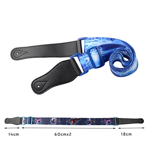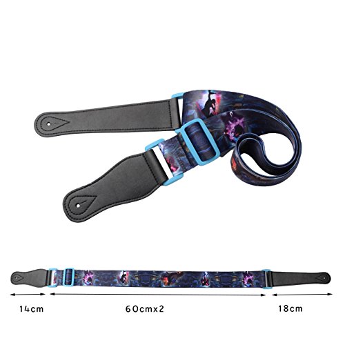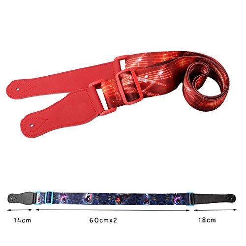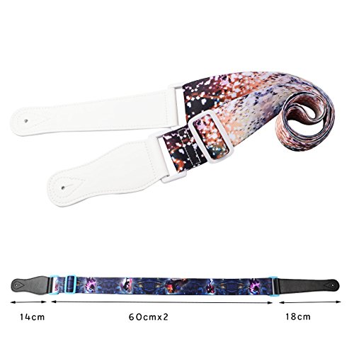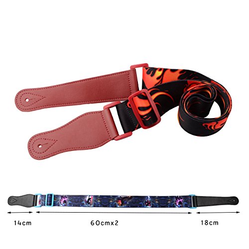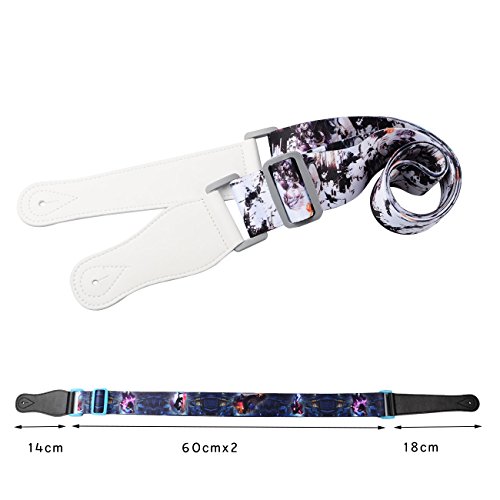 -. Brand : DYZD -. Feature : Dimensions: length 59 inches, width 1.96 inches (Adjustable from 49 inches to 70 inches) / Strong Eco-friendly polyester, dirt and stain resistant. / Secure leather holes and bonus pick pocket makes it great adults or kids guitar strap. / 100% Microfiber leather ends provide strength and durability you can trust. / New design pattern - Collection is inspired by the fashions and styles of rock and roll. -. Label : ZHAOWEI -. Manufacturer : ZHAOWEI -. MPN : AEC10024200034 -. PackageQuantity : 1 -. PartNumber : AEC10024200034 -. ProductGroup : Musical Instruments -. ProductTypeName : INSTRUMENT_PARTS_AND_ACCESSORIES -. Publisher : ZHAOWEI -. Studio : ZHAOWEI -. Title : Guitar Strap - Heat Transfer P.R.Inting,Wide Adjustment Range and Secure Leather Holes, Suitable for Electric and Acoustic Guitar or Bass