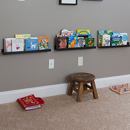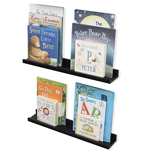 Modern Floating Kids' Nursery Room Book Display Ledge Wall Shelf 22 Inches Long Set of 2 Black