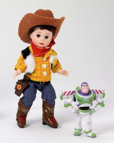 -. Feature : Jack Loves Toy Story is a darling little boy dressed like Woody / He is wearing a yellow plaid shirt, cowhide vest, cowboy boots and a hat like Woody's / Also included is a mini Buzz Lightyear / He has dark brown hair / Walt Disney Showcase Collection, as well as Hollywood Collection