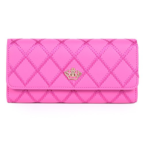 Damara Quilting Style Classic Trifold Wallet Crown Adorn Clutch Bag,Pink