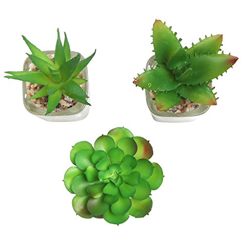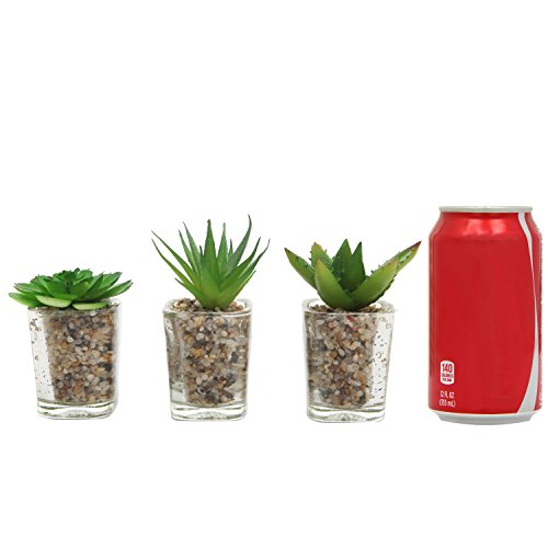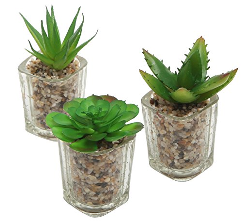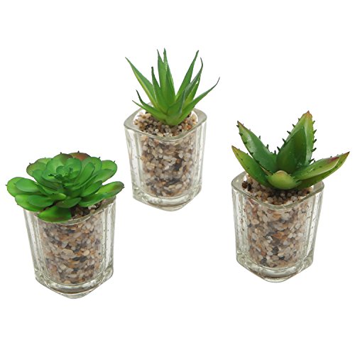Set of 3 Mini Artificial Succulent Plants in Clear Glass Pots