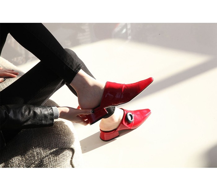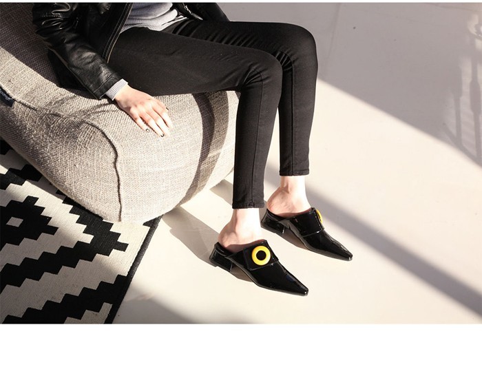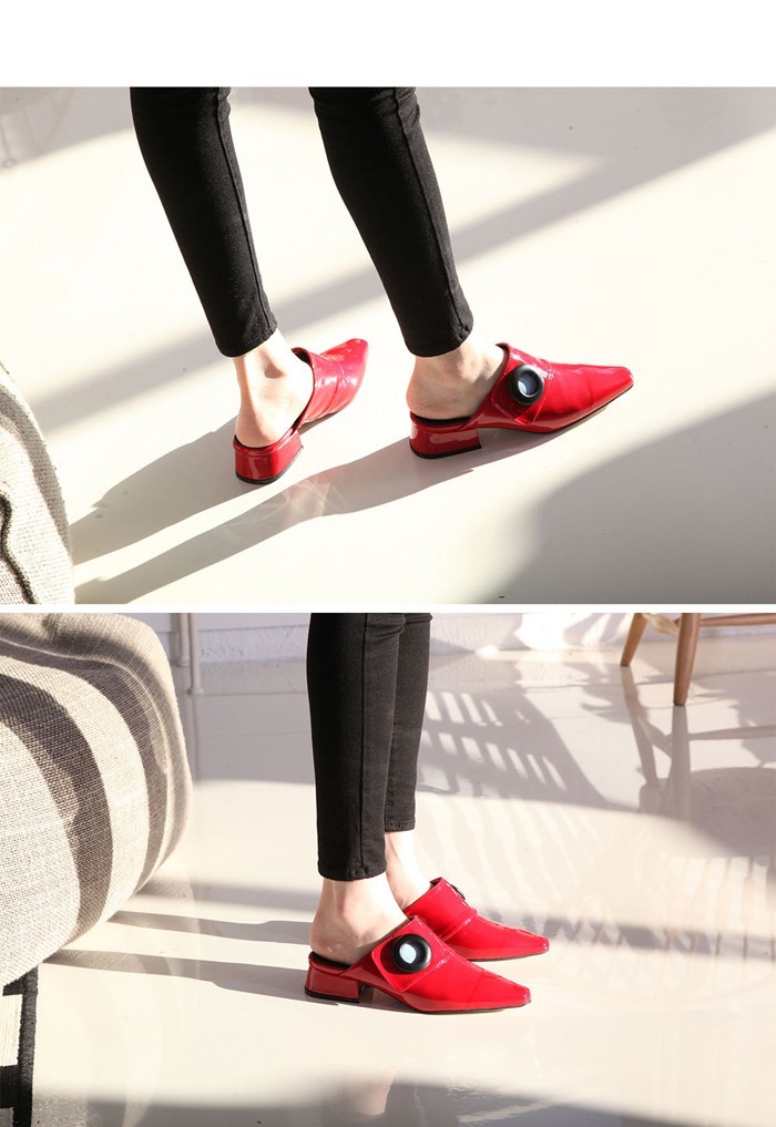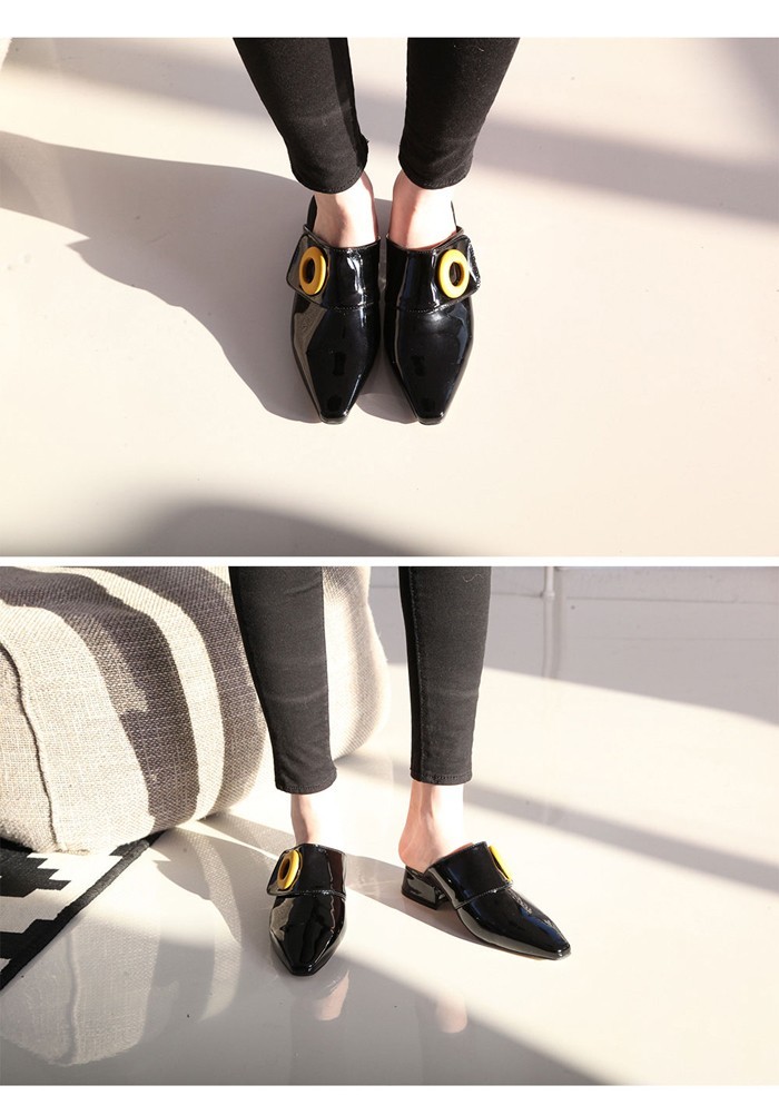 商品名:バブーシュ レディース ローヒール ポインテッドトゥ エナメル調 2017 秋 冬 ファッション 靴 婦人靴