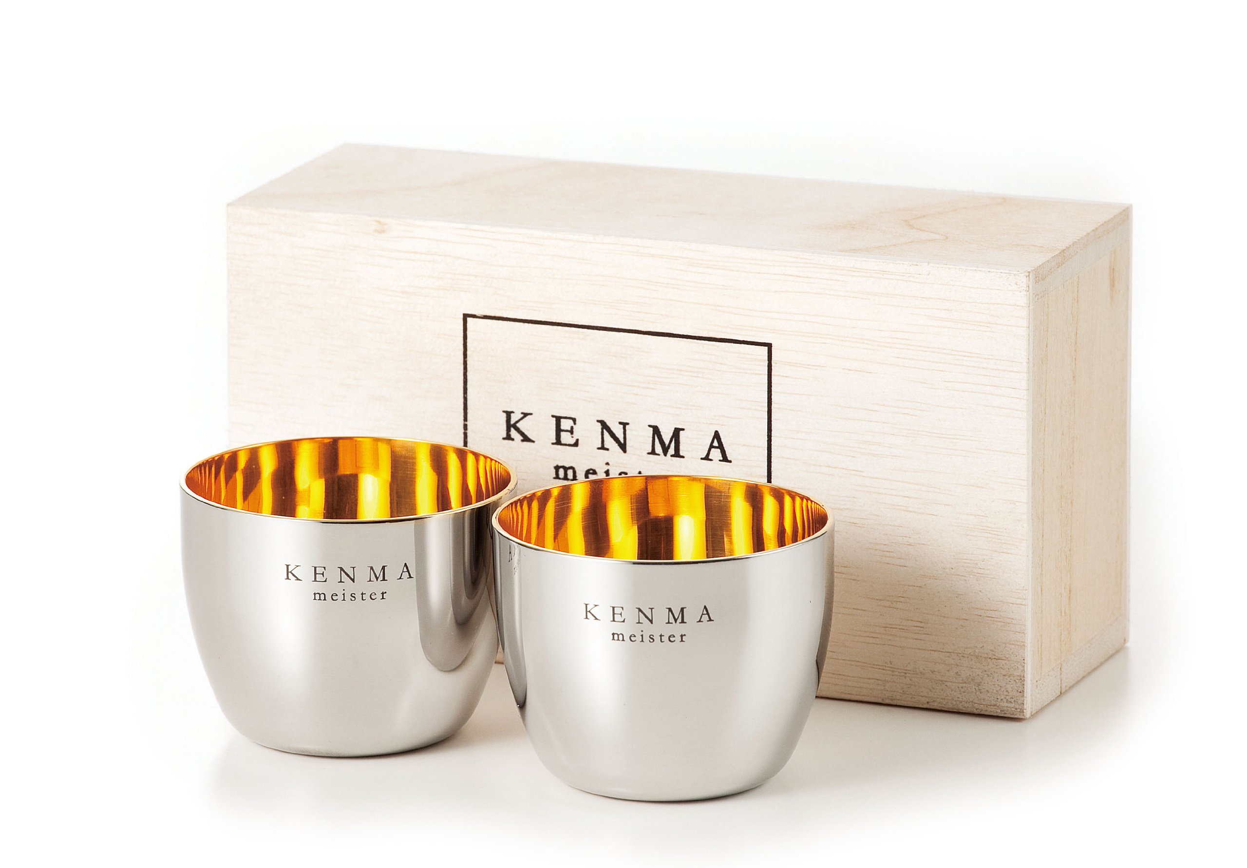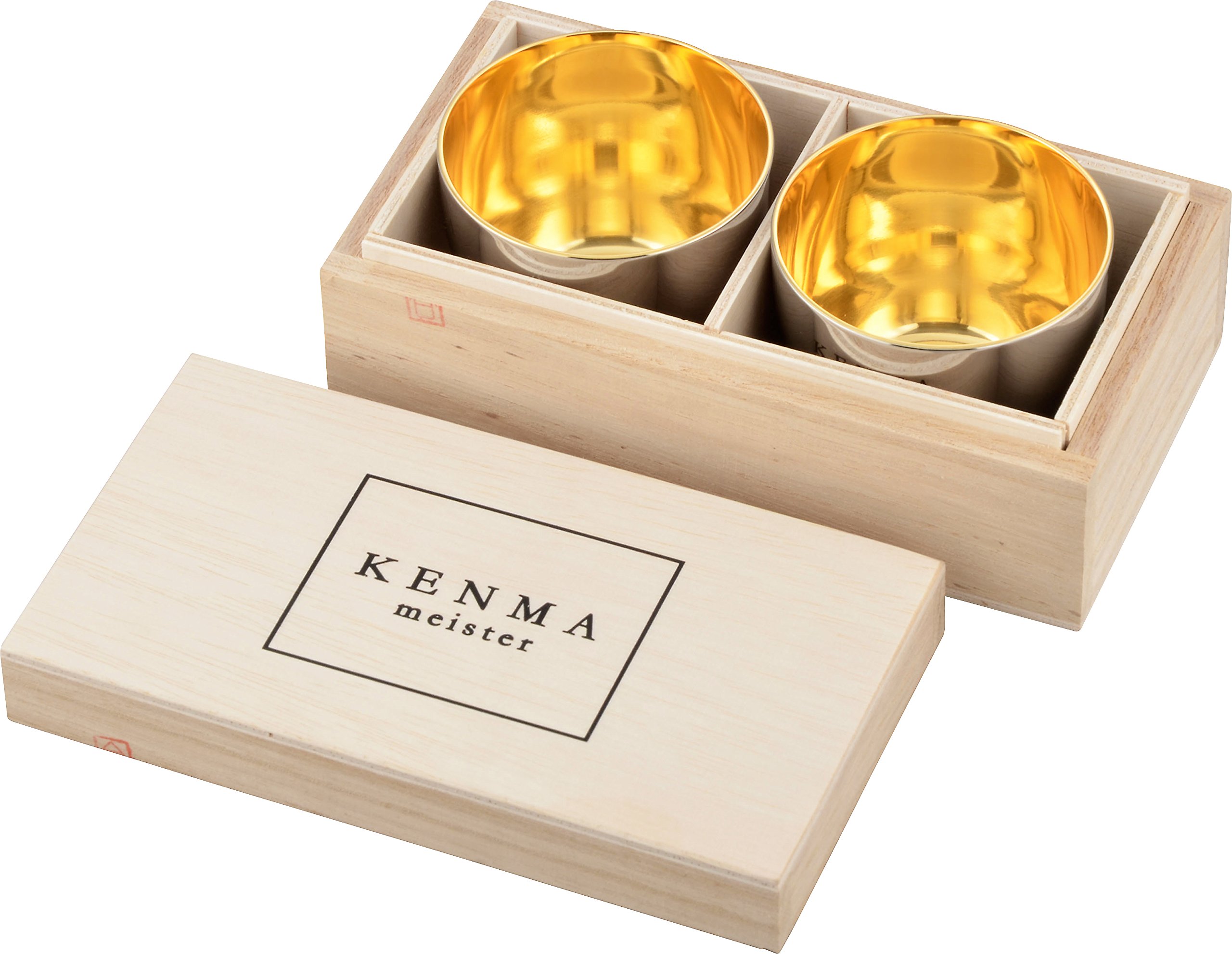 Wooden boxed Polishing Meister Stainless Large sake cup Guinomi 3.4 fl oz(Set of 2)