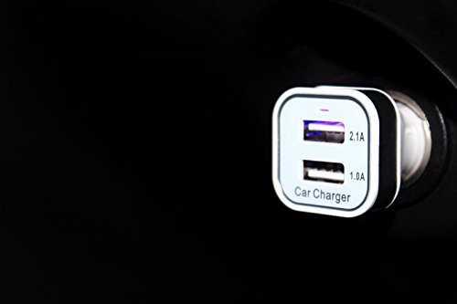 Feature : Dual Port USB Car Charger for: Archeer A226 Portable Bluetooth Speaker / Color: White (Glows Blue) / IC Smart Chip Prevents Over Charging / Two Port 1A/2.1A for Rapid Charging 2 Devices / ReadyPlug® Lifetime Warranty