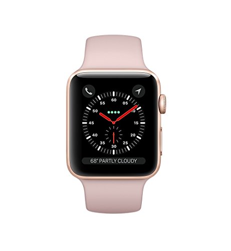 38mm Apple Watch Series 1, which comes with a rose gold anodized aluminum chassis and a Pink Sand Sport band. Designed for users looking for the next generation of connectivity, Apple's Watch moves your iPhone's apps and functions to your wrist so you can do more while leaving your phone in your pocket. Apple Watch connects to your iPhone via Bluetooth 4.0 and displays notifications, apps, and more on its 1.3" display. It can also connect directly to the Internet thanks to 802.11b/g/n Wi-Fi. The internal battery lasts for up to 18 hours of normal use and is recharged with an included inductive magnetic charger.