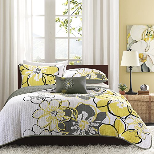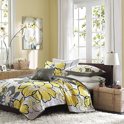 For a fresh look, this Allison Coverlet Set can brighten up your room with its vibrant yellow flowers and corresponding sham. Coverlet and sham reverse are dark grey for a great background for the bright yellow flowers.