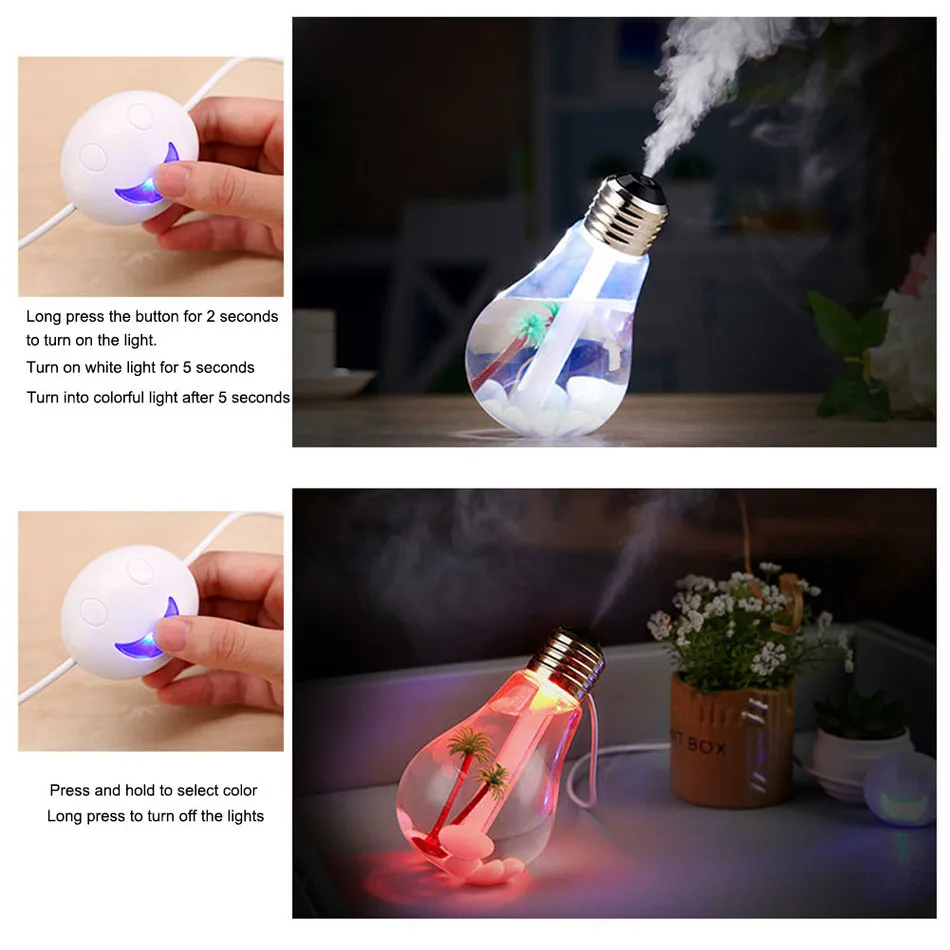 3. Colorful light bulb humidifier brings you fresh air and bright happy mood.