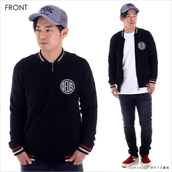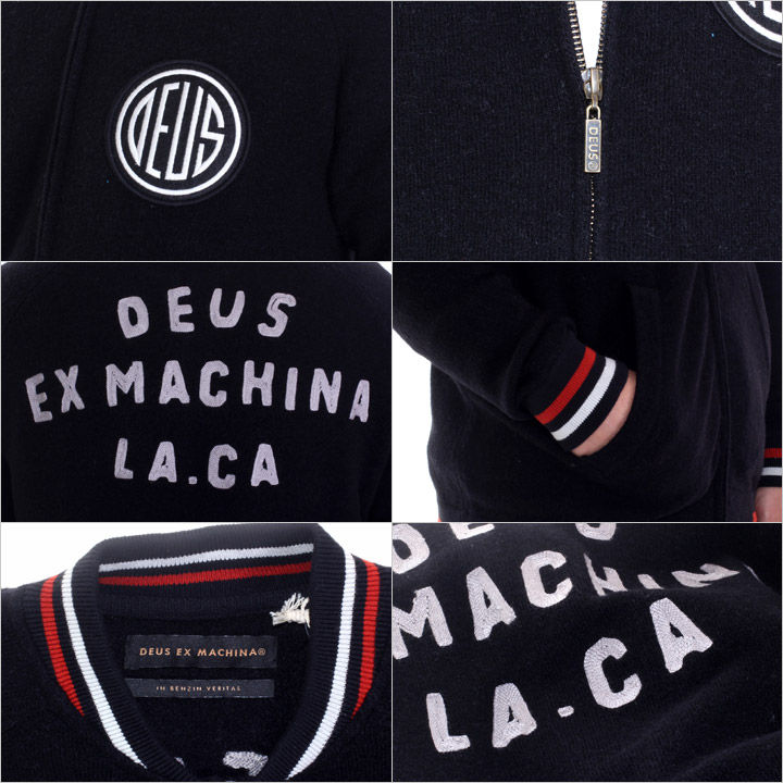 フロントにDEUSシールド、バックにはDEUSグラフィックアップリケを配置したアイゼンハワージャケットです。