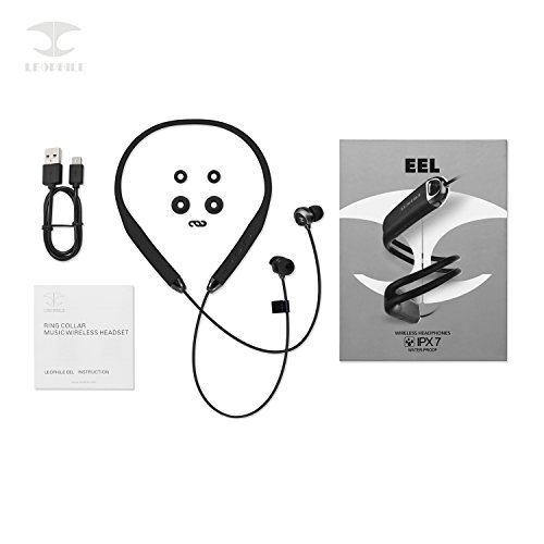 -. Binding : Wireless Phone Accessory -. Brand : LEOPHILE -. Color : Black -. EAN : 0713830977465 -. Feature : 1. IP67 WATER & SWEAT-PROOF: You can wear and use EEL for wakeboarding in the ocean, taking shower or other activities involving high velocity water. / 2. COZY & HEALTHY: Healthy and soft silicone design, EEL fits different neck sizes and conforms to your body for all-day comfort. / 3. SECURE FIT FOR SPORTS: Neckband with wire clip design, you can wear EEL for Parkour, Surfing, Rock Climbing, Mountain Biking, Skateboarding with 10-hours continuous use. / 4. COMPACT & FLEXIBILITY: EEL could be bent in all shapes and easily fit into your pocket. / 5. ADJUSTABILITY: The length of headphone wires could be adjusted by going through the neckband -. IsAutographed : 0 -. IsMemorabilia : 0 -. Label : LEOPHILE -. Manufacturer : LEOPHILE -. OperatingSystem : iOS -. PackageQuantity : 1 -. ProductGroup : Wireless -. ProductTypeName : WIRELESS_ACCESSORY -. Publisher : LEOPHILE -. Studio : LEOPHILE -. Title : LEOPHILE EEL Wireless Neckband Headphones Sports IP67 Waterproof, Bluetooth 4.1 Stereo Headset with In-Ear Earbuds Earphones for RUNNING & WORKING - Black -. UPC : 713830977465