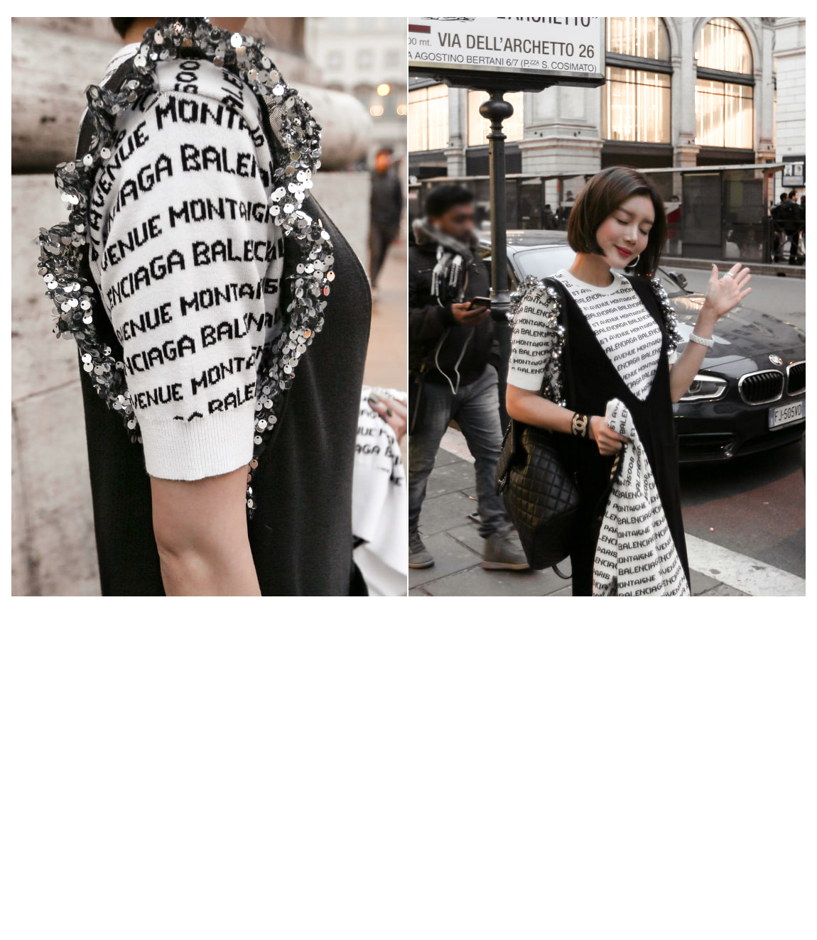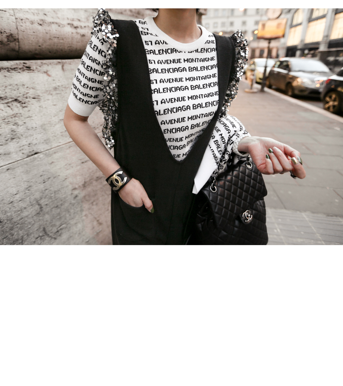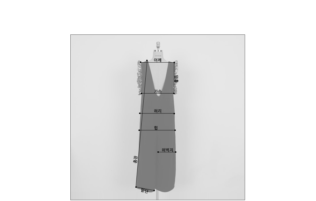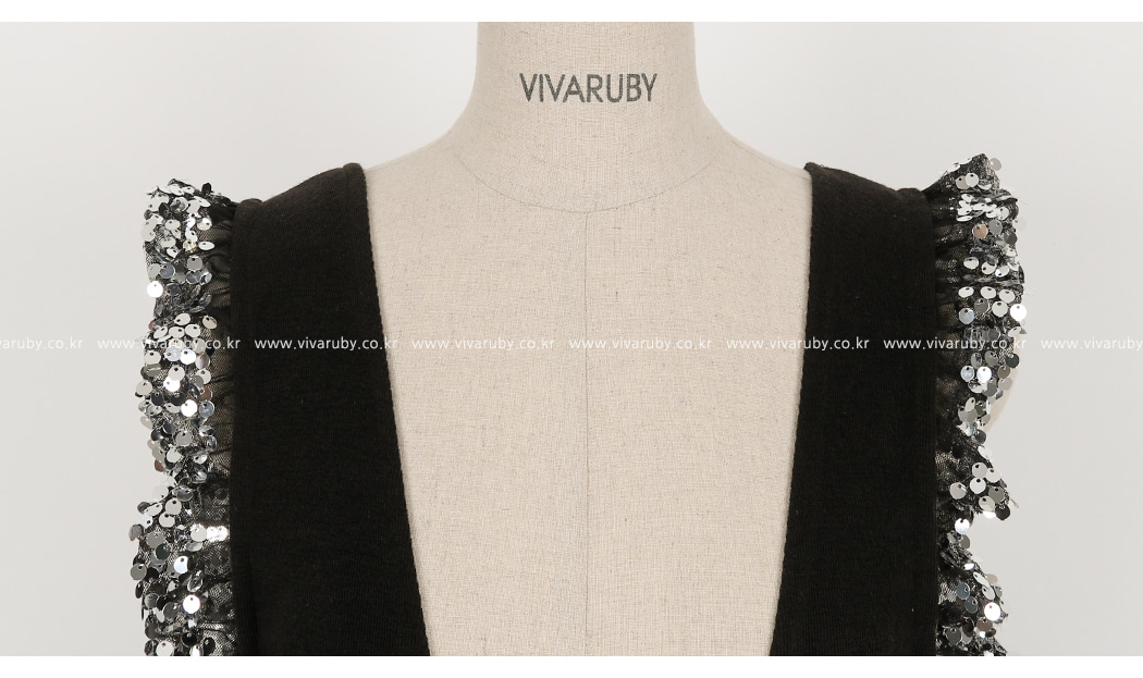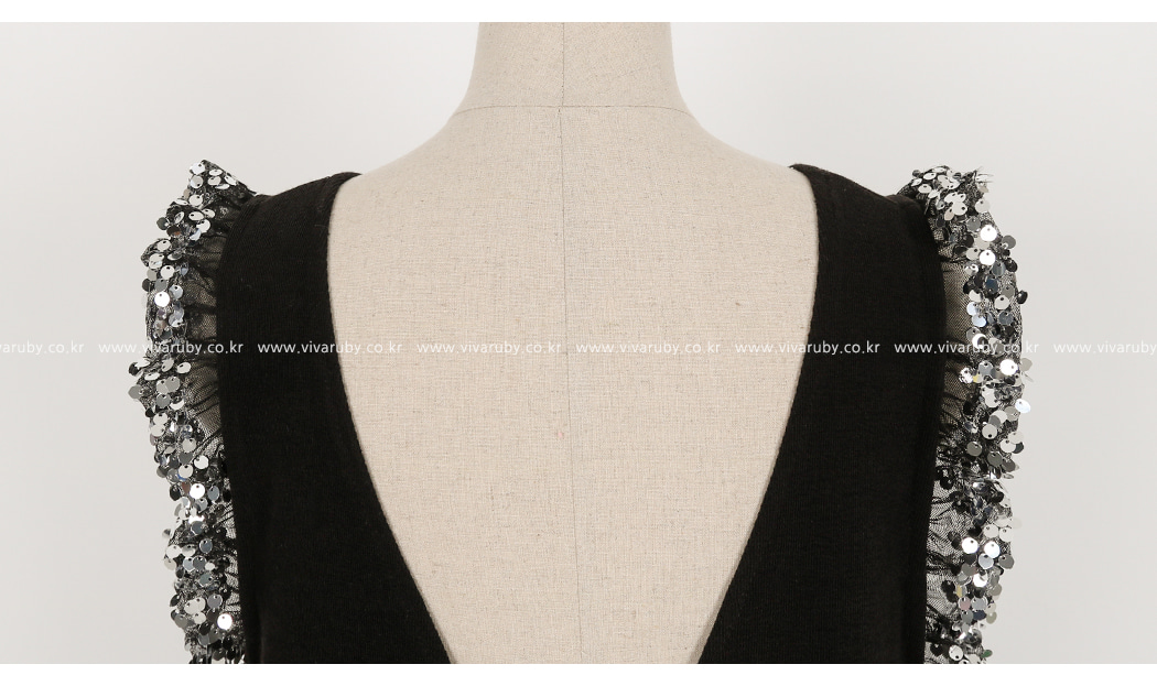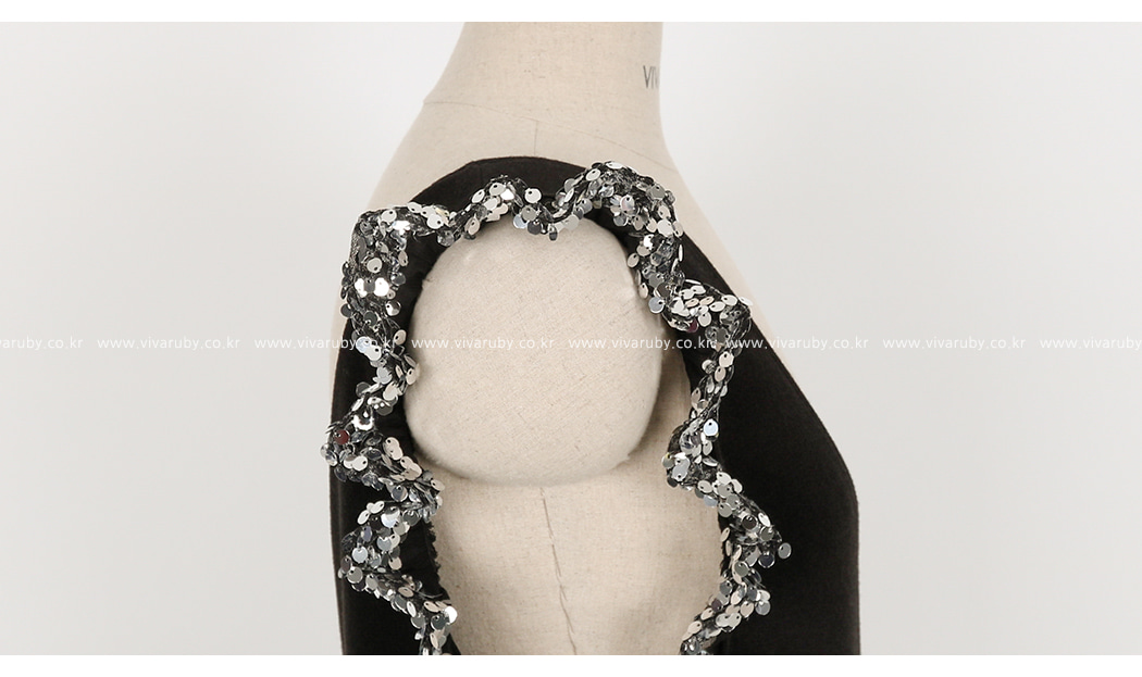 암홀라인의 스팽글 디테일로 스타일리시한 포인트를 주었어요