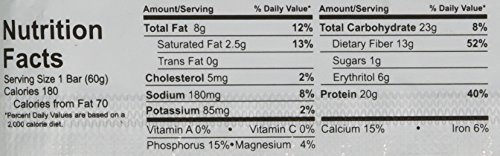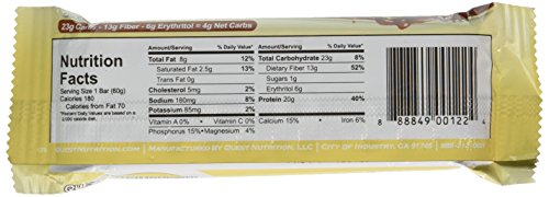 -. Feature : 20g of protein, 4g of net carbs, 180cal / No added sugar-sweetened with erythritol, stevia and sucralose / All natural, gluten and soy free / Made with high quality whey and milk protein isolates / Contains real chocolate, cocoa butter, almonds, cinnamon, and natural flavors