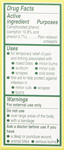 Product DescriptionOriginal Formula, Medicated Campho-Phenique, ONE BOTTLE PACK, 0.75 oz For insect bites, minor skin irritation minor burns For instant pain itch relief 6/30/2015, 11/150