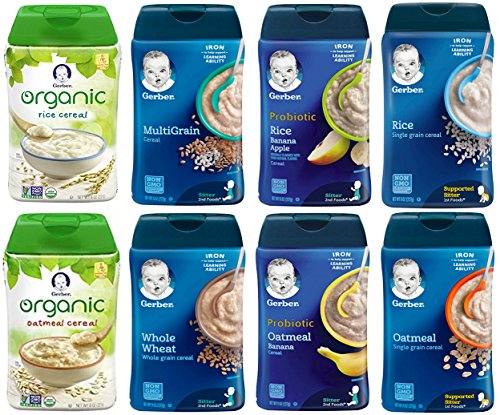 -. Feature : 8 ounce container - about 1 week's supply per 8 oz. container* *assumes infants are fed 2 servings (1/2 cup of cereal) per day" / Baby's #1 food source for iron in an easy to use package; Our less mess package is easy to open, close, pour or scoop / Among the foods baby eats, Gerber cereals are the #1 source of iron & 10 essential vitamins & minerals; 2 servings a day = 90% of babies daily value for iron / Our VitaBlocks Nutrient blend of Iron, Zinc, Calcium, Vitamin C, Vitamin E and six B Vitamins helps support healthy growth and development; Contains DHA to support brain and eye development; Includes Bifidus BL, a beneficial probiotic to support a healthy immune system.