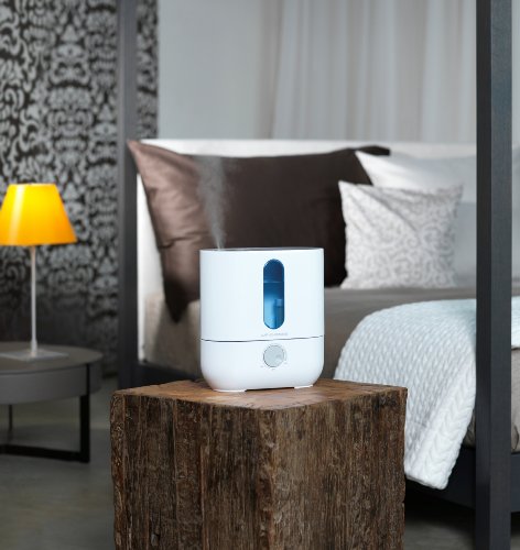 The subtle water illumination makes this Ultrasonic Humidifier a real eye-catcher – a unit for every home. This handy and compact design fits anywhere and the cleaning is done quickly. The high humidification output guarantees optimal humidification with a low energy consumption. The integrated Hydro Cell and the demineralization cartridge keep the water fresh and free of minerals. The unit is whisper-quiet, allowing for a restful sleep or an undisturbed working environment. The fragrance container allows for an individual room scenting.Feature