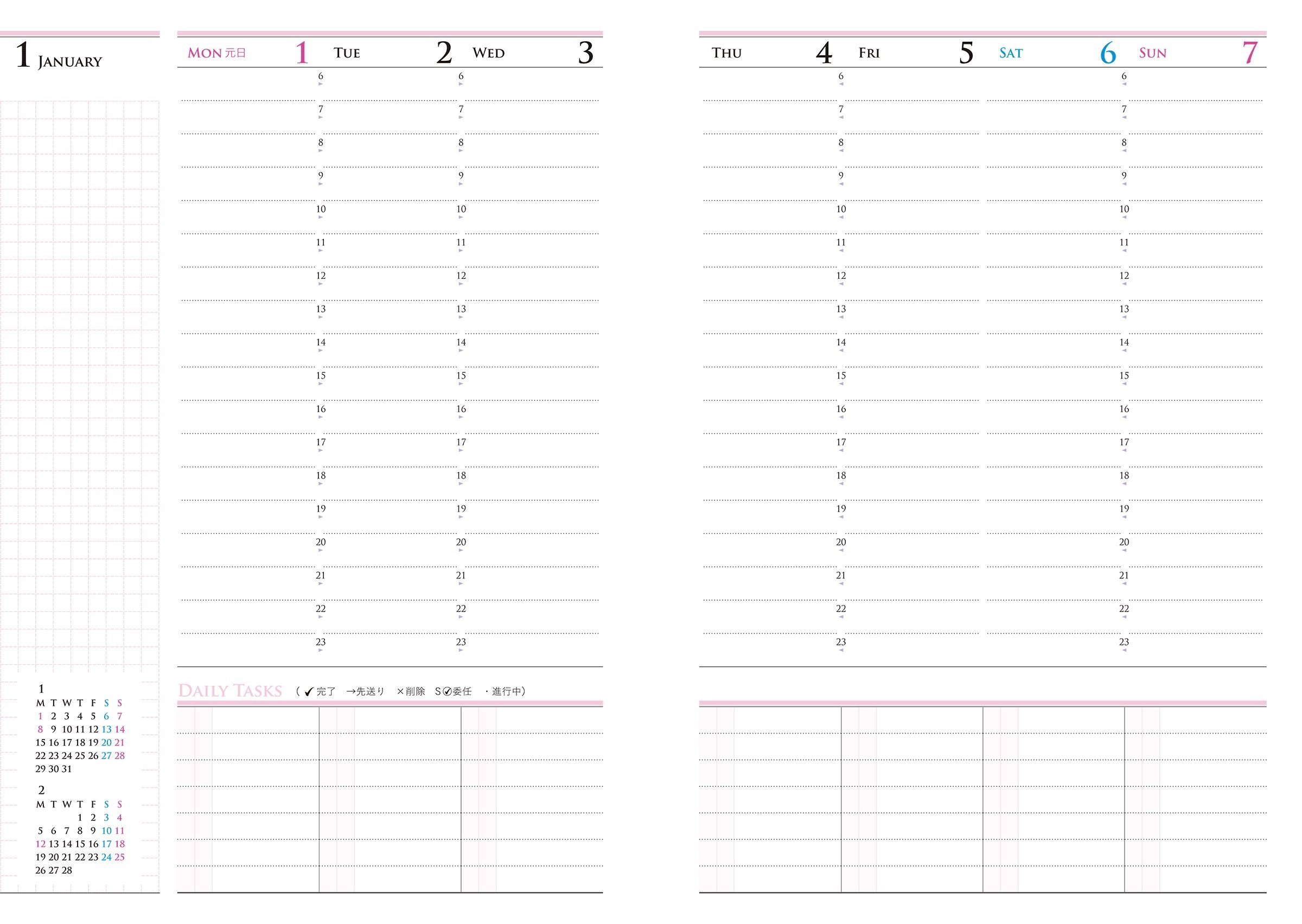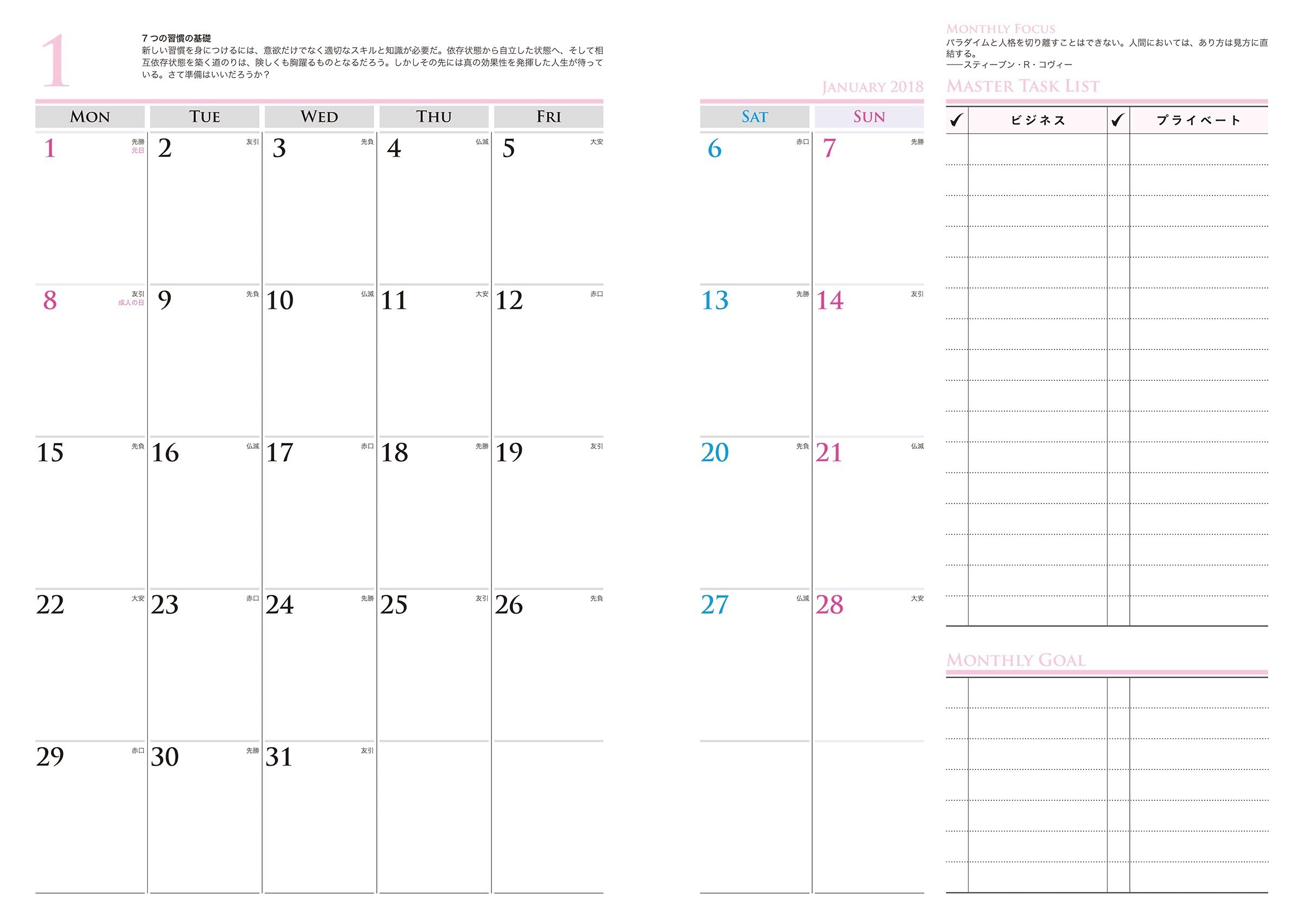A5 size weekly type binding notebook to incorporate "7 customs" into daily life and to carry out important things.