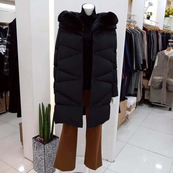 최고급 소재의 퍼컴비 구스코트입니다심플한 스타일이 절제된 고급스러움을 배가시켜주는 스타일입니다