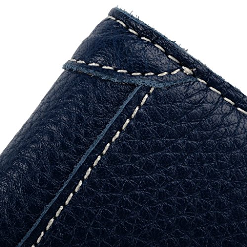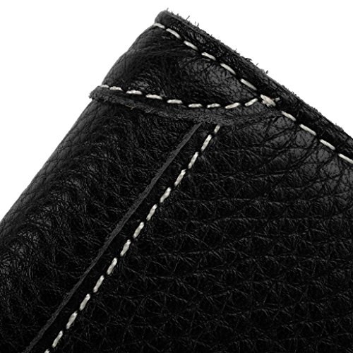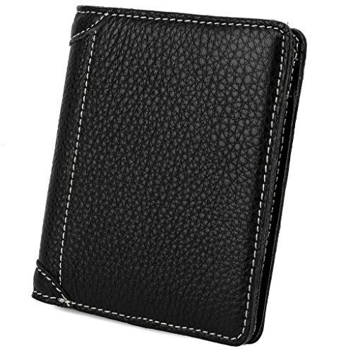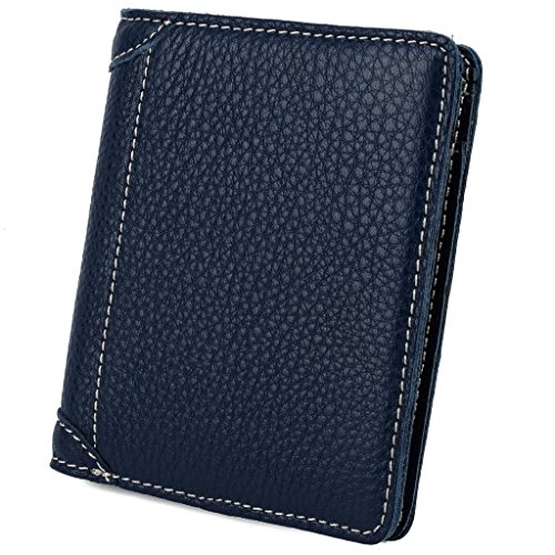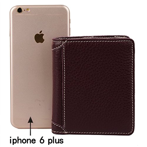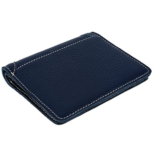 -. Feature : Ultra soft grain leather,nice looking and soft touch. / Detailed contrast stitching brightens up the wallet.Sturdy yet stylish. / 6 card slots, 1 photo slot, 2 full-length compartments for cash/bills.No coin pockets here. / Functional yet small enough to put in your coat pocket. / Dimensions: 4.72"L x 3.93"H x 0.86"W.
