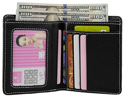 -. Title : YALUXE Ultra Soft Leather Small Bi-fold Wallet with ID Window