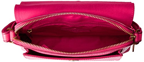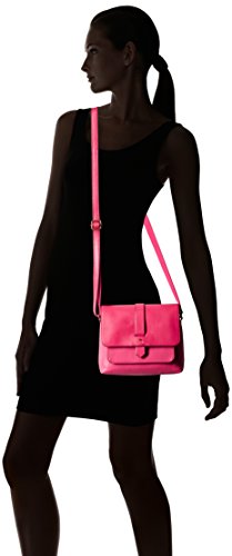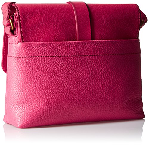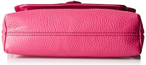 Mixed-texture leather bag featuring front flap-over pocket with belt-through strap closure