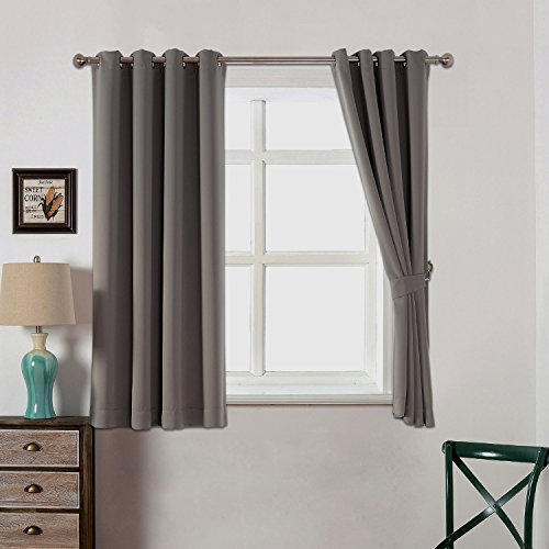 MEASUREMENT--Set of 2 panels: 104"W X 63"L, each panel: 52"W X 63"L,easy hanging with 8 antique bronze metal eyelets each panel,1-3/5 inch inner diameter for rods up to 1-3/8 inch diameter.FREE GIFT!-2 matching tie back included.