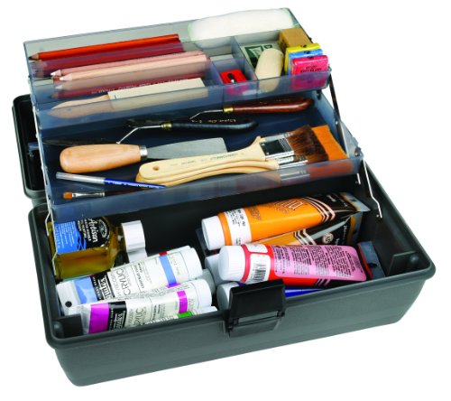 ArtBin Upscale 2-Tray Tool Box with Metal Links- Slate Gray Art Supply Container, 8399