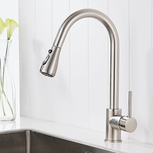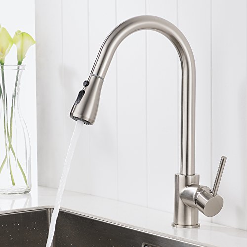 FLG Modern High Arch Pull Down Kitchen Sink Faucet with Pause Function Sprayer Brushed Nickel