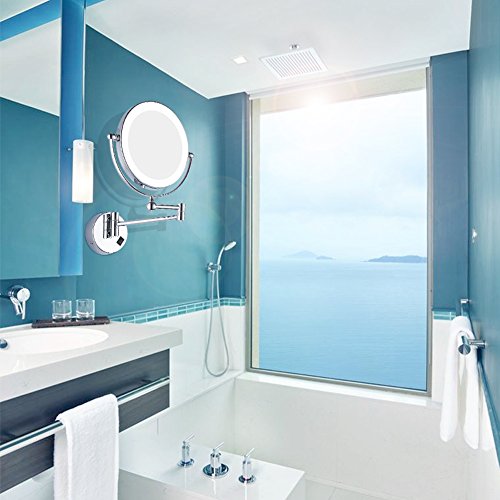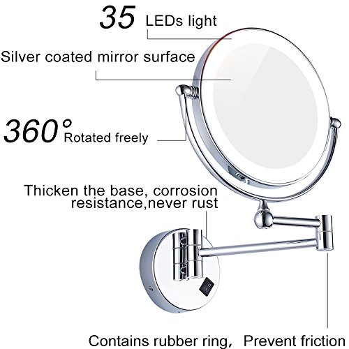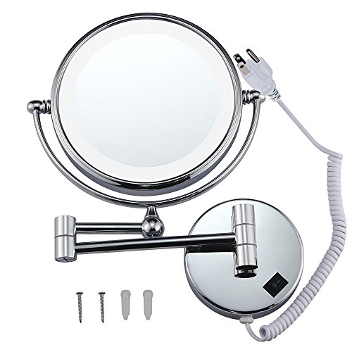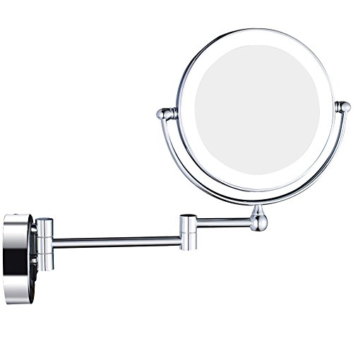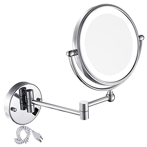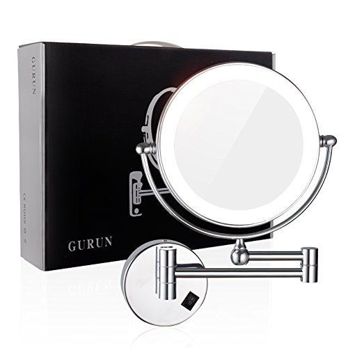 GURUN 8 Inches LED Lighted Wall Mount Makeup Mirror with 7x Magnification, Double Sided 360 Degree Swivel Chrome Finish (1805D,7x)
