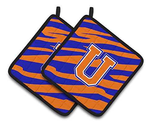 Caroline's Treasures Monogram Initial U Tiger Stripe - Blue Orange Pair of Pot Holders CJ1023-UPTHD, 7.5HX7.5W, Multicolor