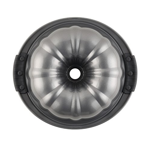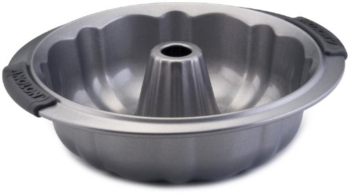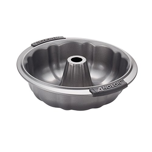 Studio : Anolon Publisher : Anolon Binding : Kitchen Product Description Our 9-1/2-inch fluted mold (sometimes called a bundt pan) has a tube in the center that brings heat to the center of the cake so that it browns in the same time as the outside of the cake. The nonstick surface helps you remove the cake from the pan without damaging and makes cleanup easy. Most commonly used for favorites such as coffeecake or pound cake, its unique shape adds a decorative touch to any dessert table. Heavy gauge construction resists warping. Comfortable silicone Anolon SureGrip handles provide a slip-free grasp. Dishwasher suitable and oven safe to 500°F/ 260°C. Lifetime Limited Warranty. 0