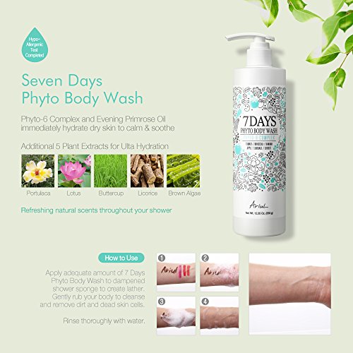 Ariul 7 Days Phyto Body Wash Cleanser with Evening Primrose Oil 12.35 oz Mineral Water and Electrolytes for Ultra Hydration, Phyto-6 Complex for...