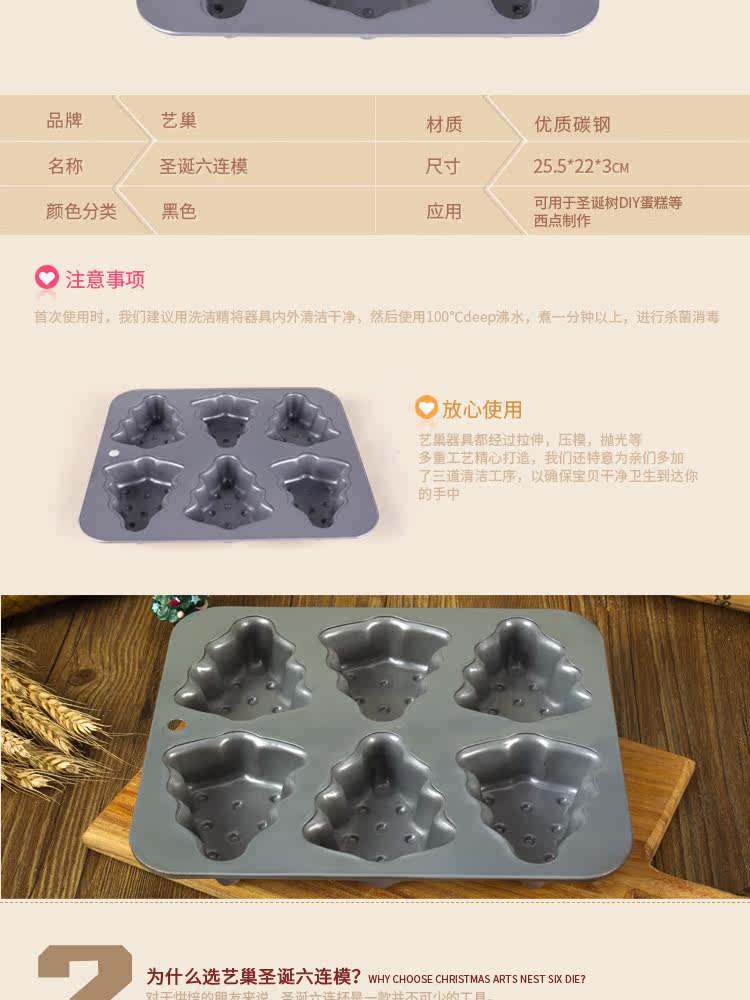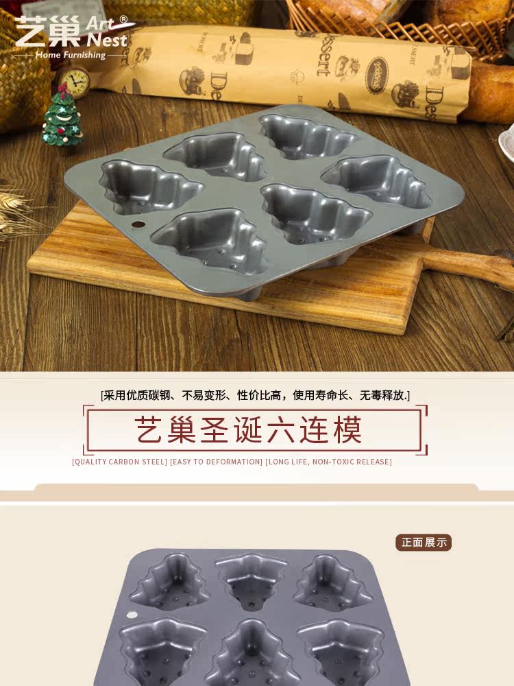 艺巢 烘焙工具器具烘焙模具6连模/连杯DIY圣诞树蛋糕模圣诞节礼物