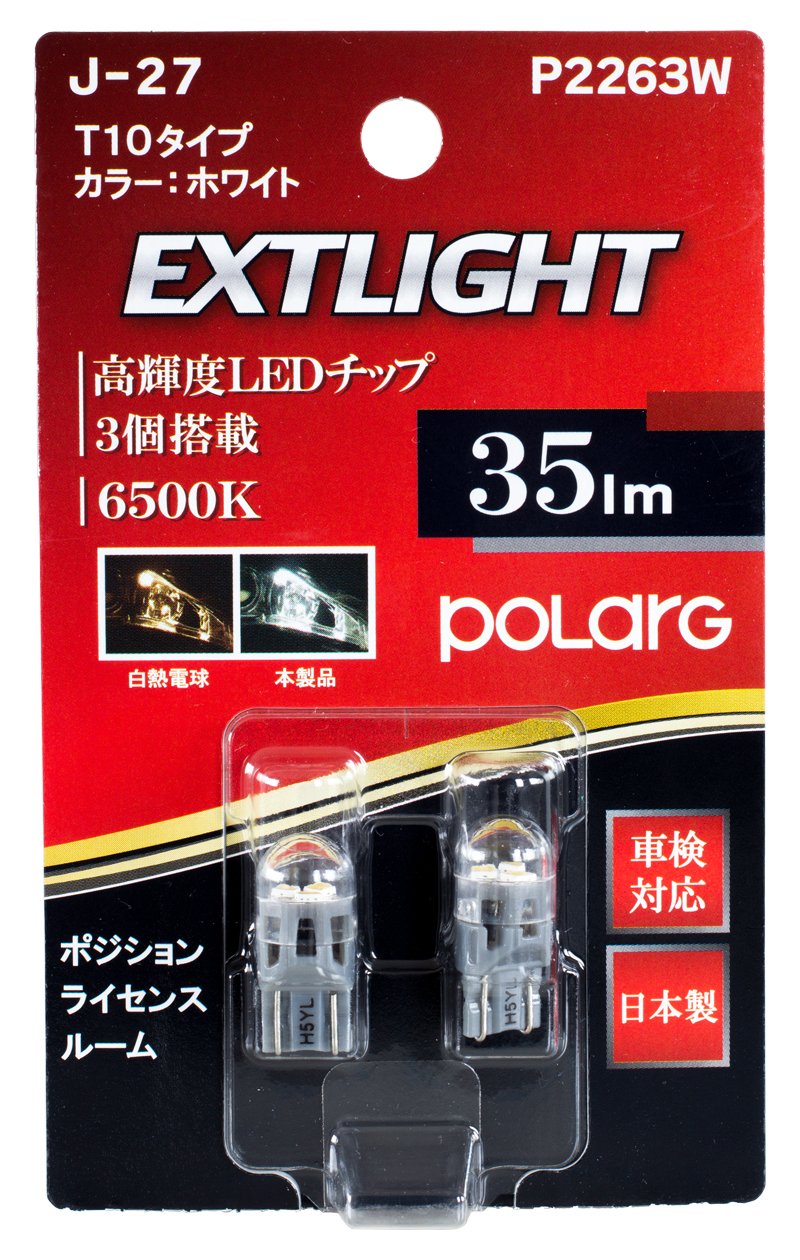 Nissei industrial POLARG Made in Japan LED3 lights] T10 type white 6500K 35LM position license Room 2 pieces J-27 P2263W