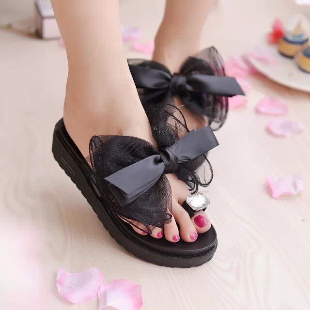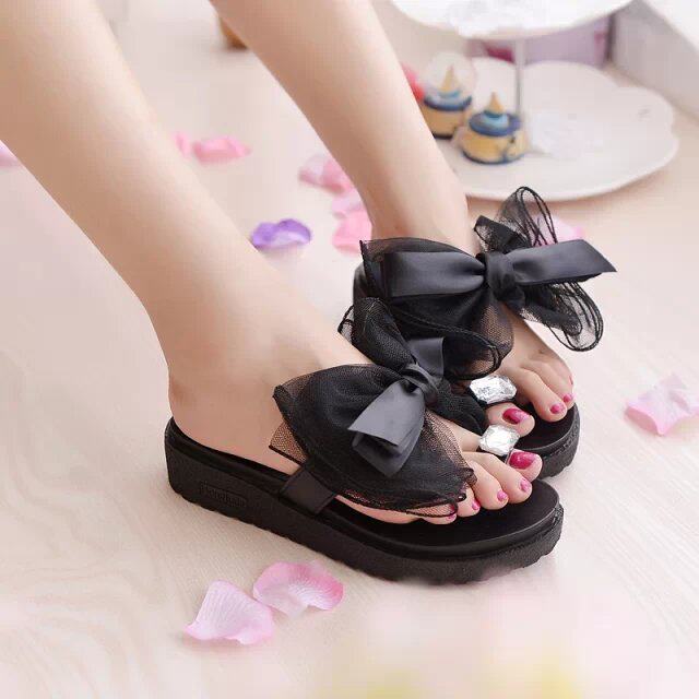 夏季新款凉拖鞋女松糕厚底花朵人字拖时尚平跟沙滩鞋平底凉鞋