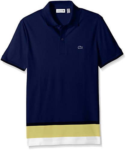 Lacoste Men's Short Sleeve Engineered Stripe Botton Pique Slim Polo, Flour/Thermal Blue-Sulphur Pit-Navy Blue, 5
