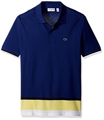 Lacoste Men's Short Sleeve Engineered Stripe Botton Pique Slim Polo, Ocean/White/Sulphur Pit/Navy Blue, 6