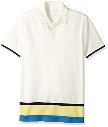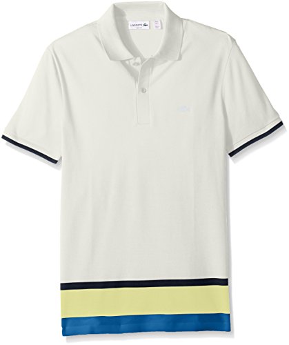 Lacoste Men's Short Sleeve Engineered Stripe Botton Pique Slim Polo, Flour/Thermal Blue/Sulphur Pit/Navy Blue, 7