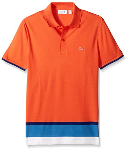Lacoste Men's Short Sleeve Engineered Stripe Botton Pique Slim Polo, Pumpkin/White/Thermal Blue/Ocean, 3