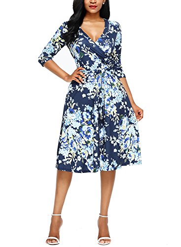Dokotoo Womens Casual Summer V Neck Floral Print Dress with Belt