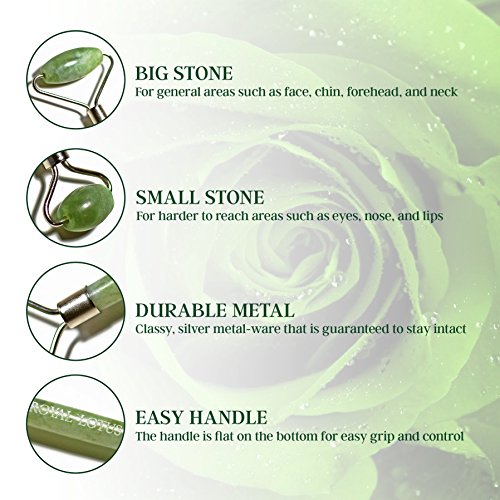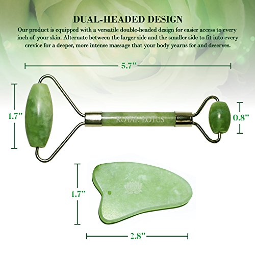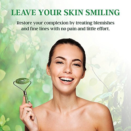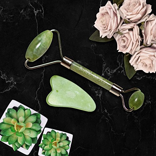 ❀ EXCEPTIONAL QUALITY - Our Jade Roller and Gua Sha Stone set is made of pure jade and is 100% safe to use. You will feel a difference on your skin as the jade is packed full of trace mineral elements that will release and replenish your complexion back to its former glow. The natural cooling effect of the stone will work to alleviate puffiness and improve skin elasticity for a healthier, more youthful appearance.