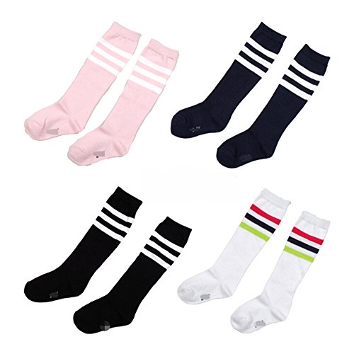 EFORSTORE 4 PAIRS KIDS GIRL COTTEN BOOTIE KNEE HIGH LONG SOCKS FOR 6-7 YEARS OLD