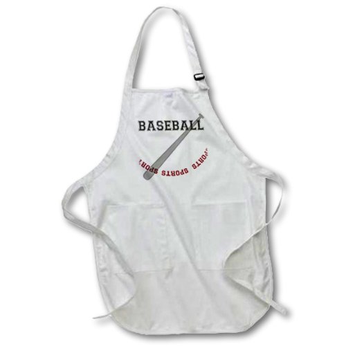 3dRose apr_123726_1 Baseball Bat Sports Theme Art Full Length Apron with Pockets, 22 by 30-Inch, White